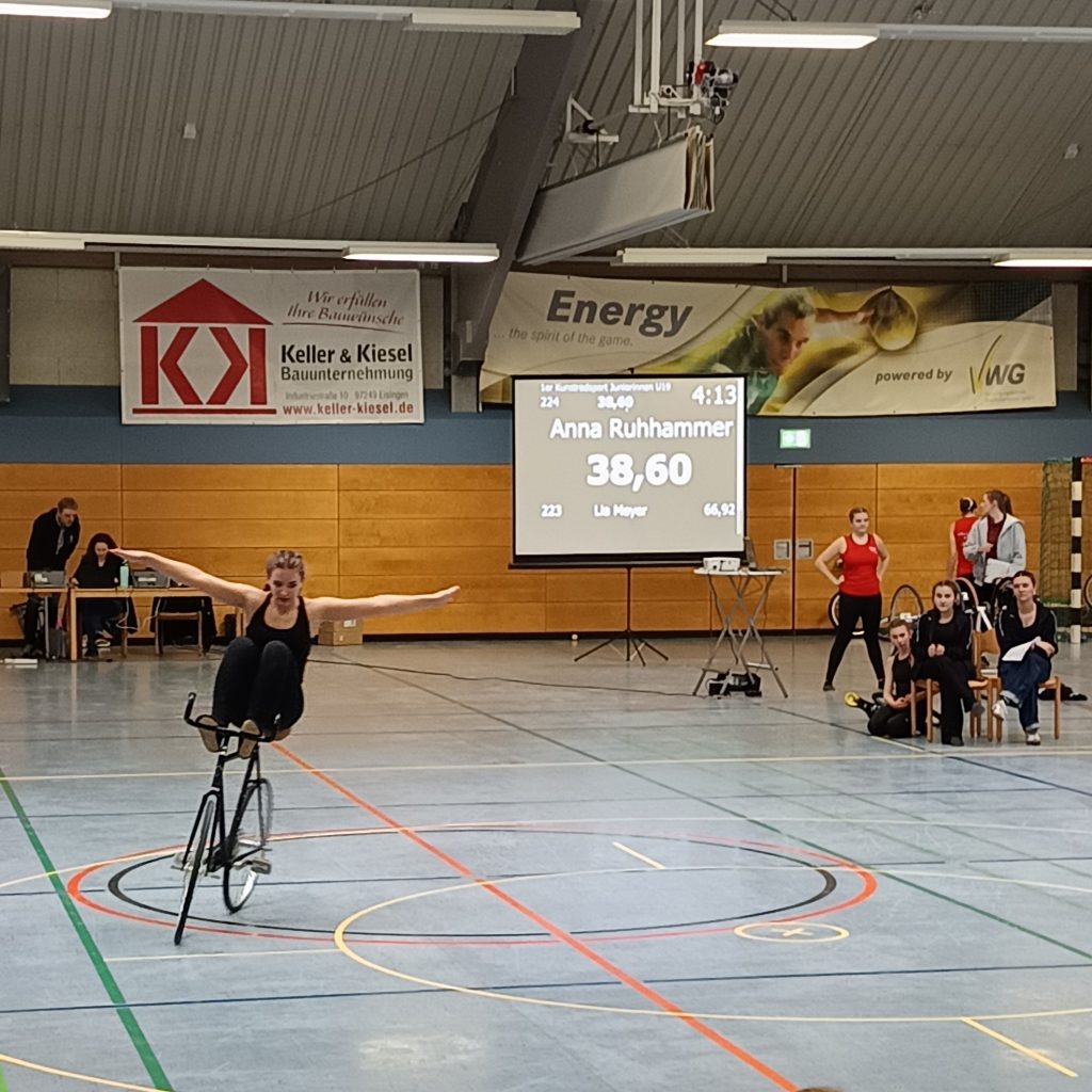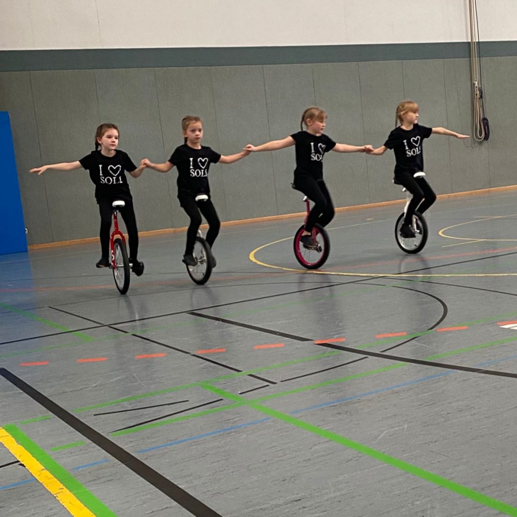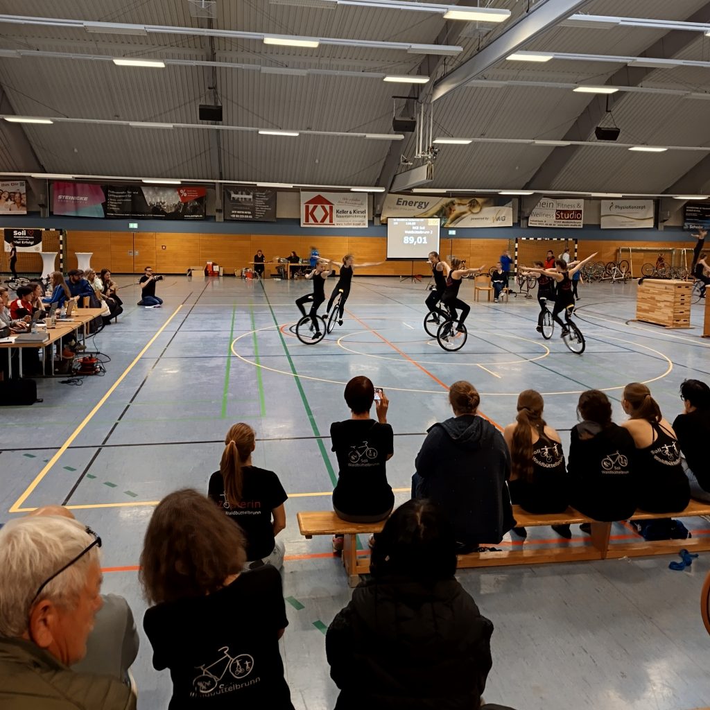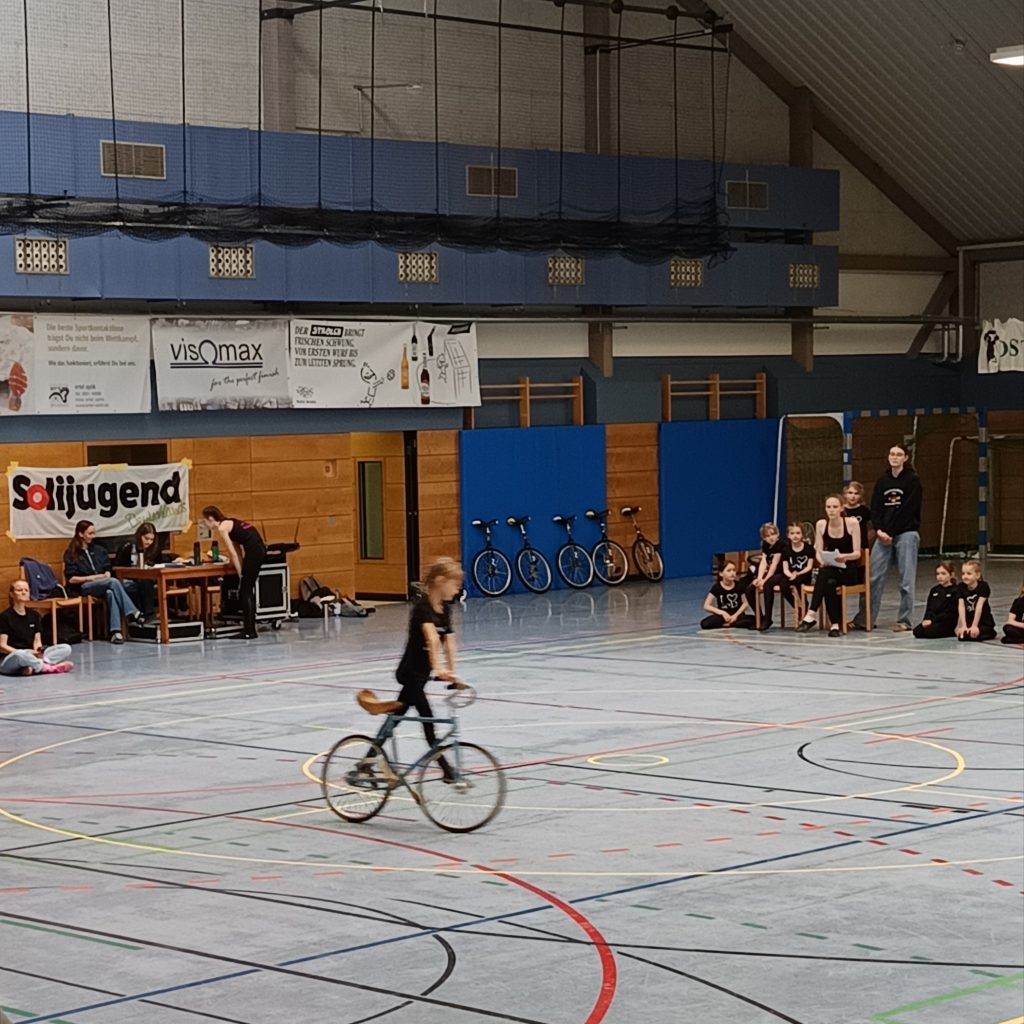 Neben Radball macht das Kunst- und Einradfahren den größten Teil unseres Trainings- und Sportbetriebs aus. Um die 65 Kinder und Jugendliche betreiben diese Sportarten in unserem Verein. Dafür wird aus einem Katalog von Übungen eine Kür zusammengestellt, die die Sportlerinnen wöchentlich zu ihren Trainingszeiten einüben. Bei Wettkämpfen wird diese Kür dann von einer Jury, dem Kampfgericht, bewertet. Bei den Meisterschaften in der Region sind wir immer Viele! Ein großer Dank gilt den Trainerinnen und Allen im Hintergrund, die viel Zeit, Energie und Nerven in unseren Nachwuchs investieren. Ohne Euer Engagement wäre der Sportbetrieb so nicht möglich.