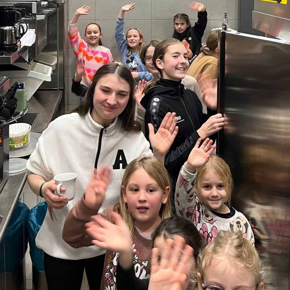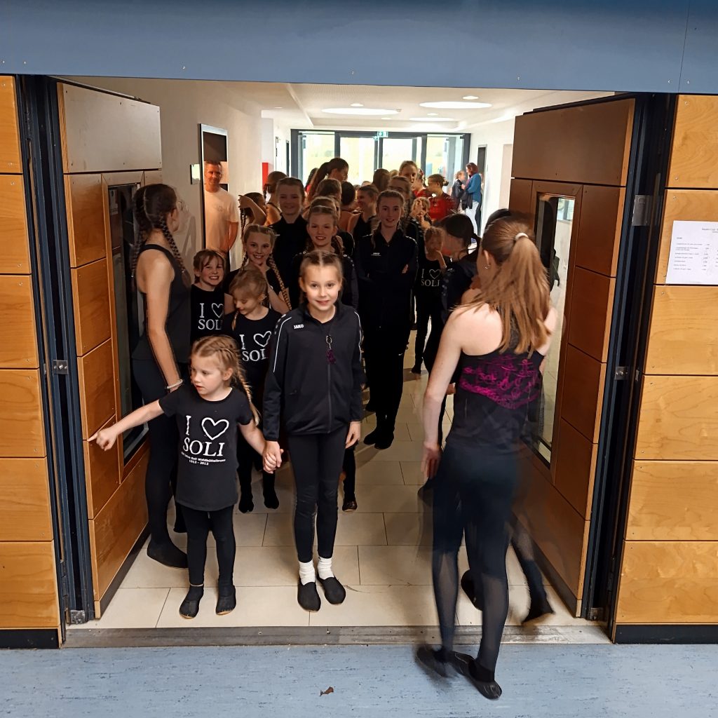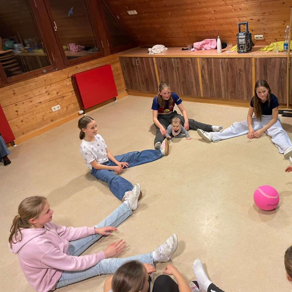 Da war was los! Vroni übte mit ca. 30 Sportlerinnen die Showeinlagen für kommenden Samstag ein.