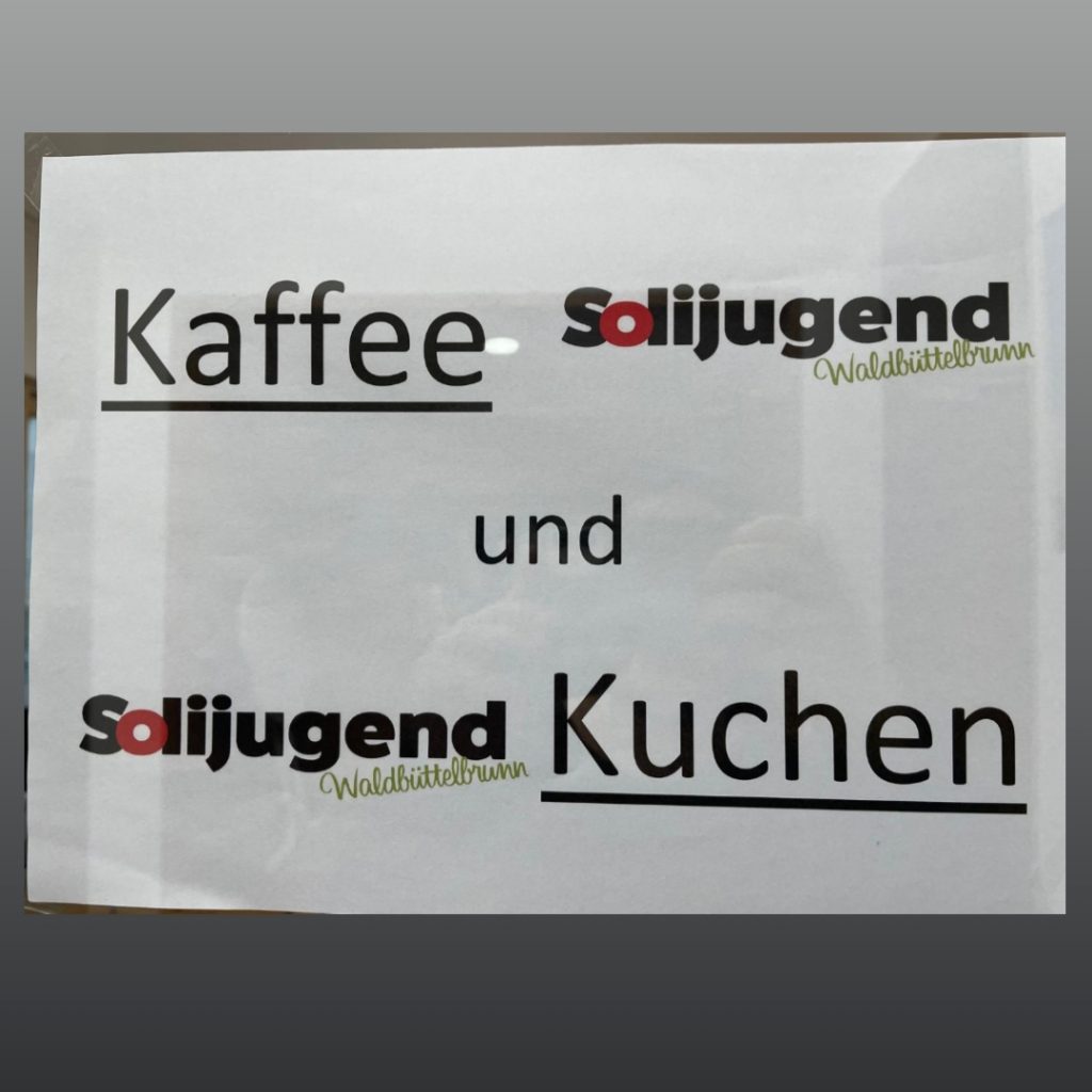 Samstag ab 10.30 Uhr Weißwurstfühstück, den ganzen Tag Kaffee & Kuchen und die bekannten Soli-Schmankerl.