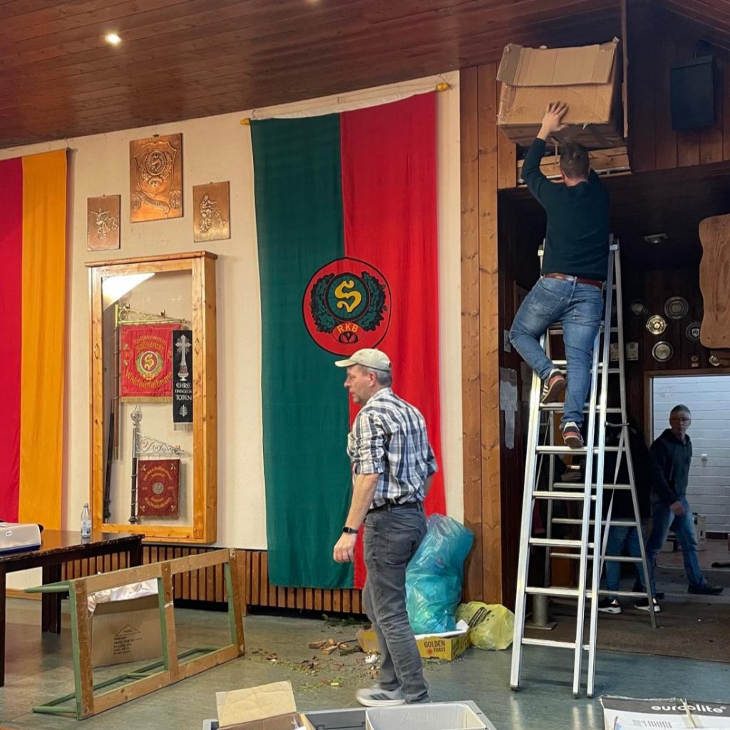 Am Tag nach der Weihnachtsfeier waren die fleißigen Wichtel und Engel zum Aufräumen in der Halle. Viele Hände – schnelles Ende und die Halle ist wieder bereit für den Sportbetrieb.