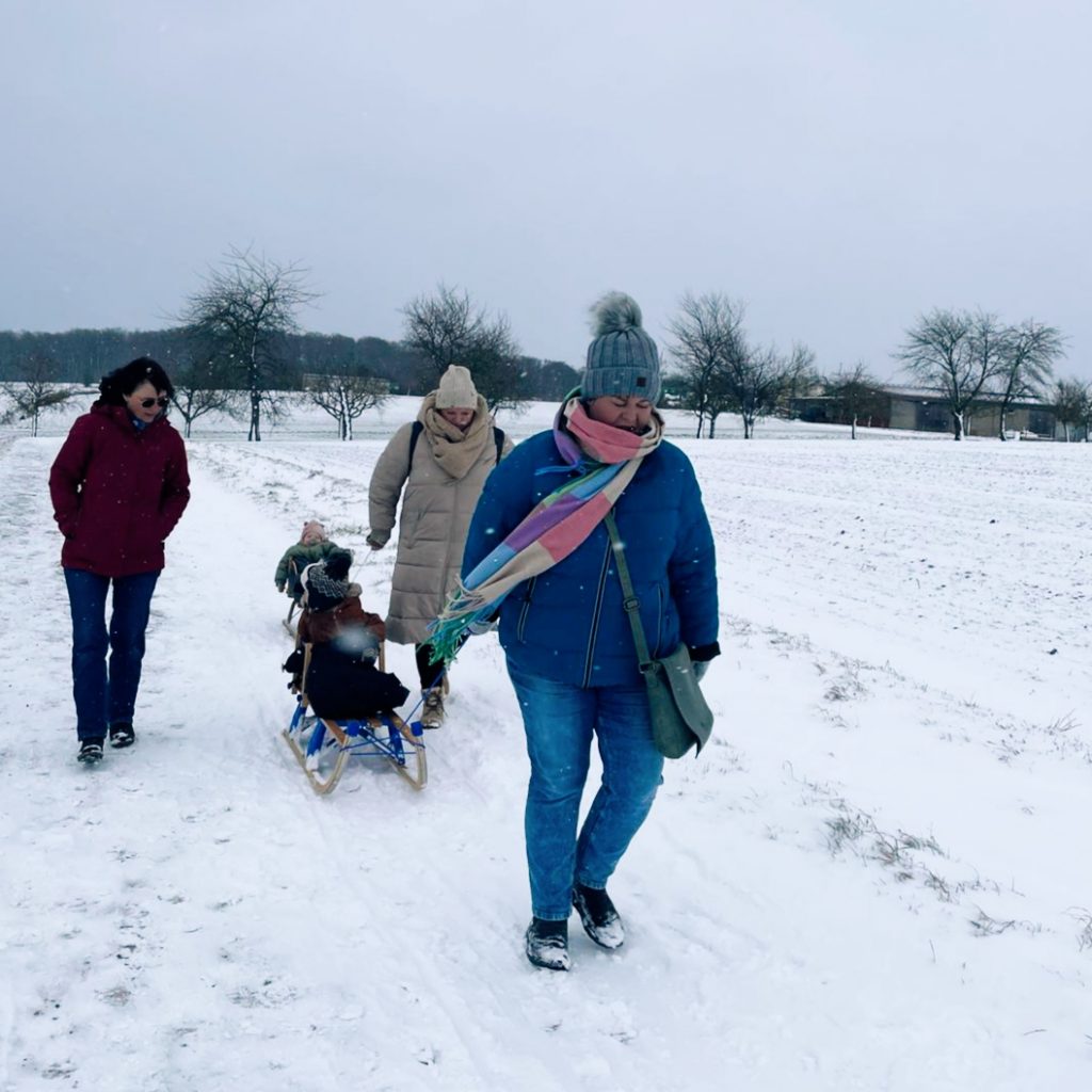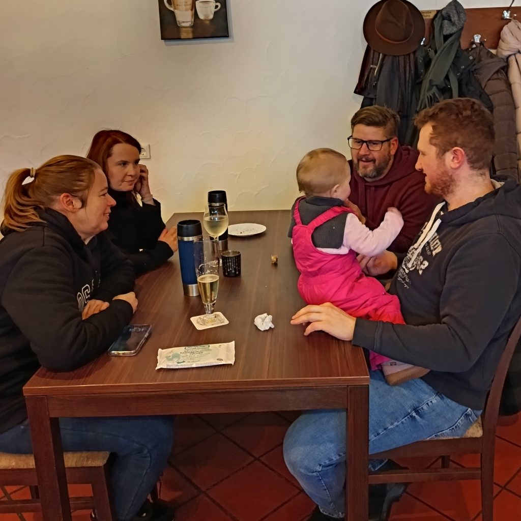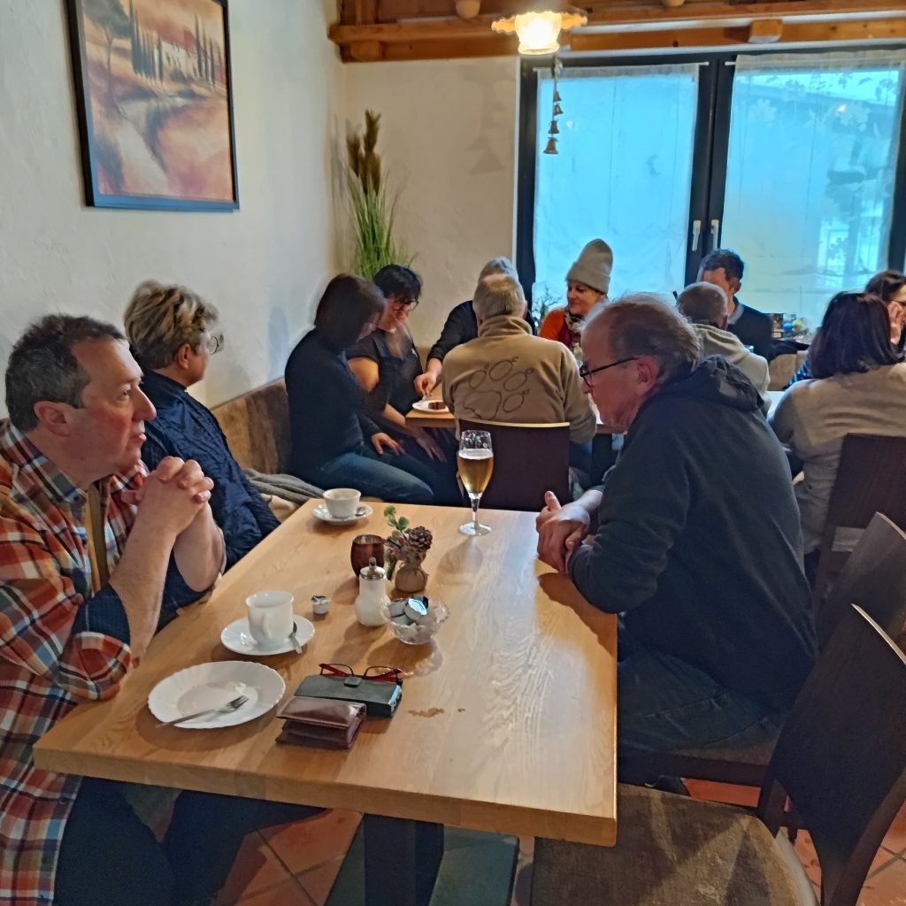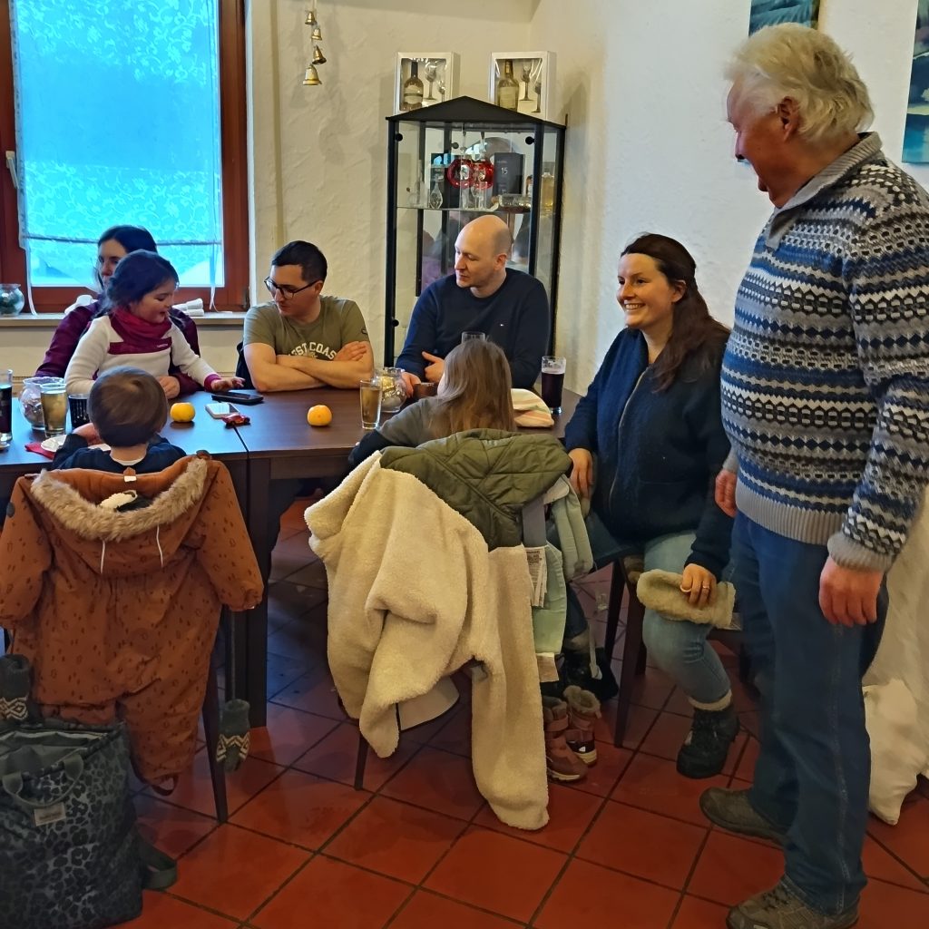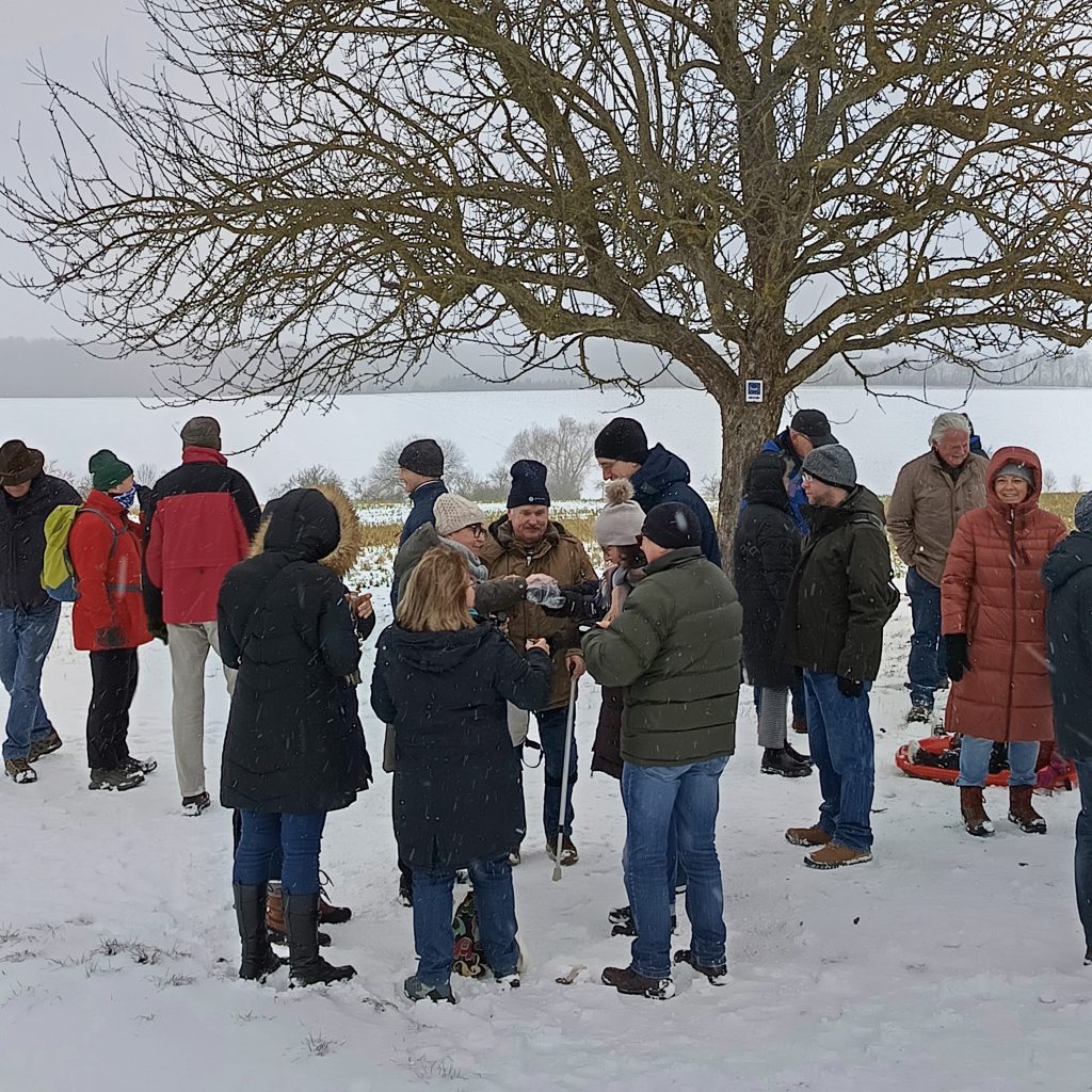 Bei unserer Winterwanderung am 1. Samstag in 2026 waren wir an die 50 Leute – Groß und Klein. Dieses Jahr liefen wir durch die Waldbüttelbrunner Flur. Dadurch waren auch wieder mal einige Familien mit kleinen Kindern dabei. Bei kaltem Winterwetter stapften wir durch den Schnee und konnten die Kinder in ihren Schlitten mitnehmen. Auf den Höhen blies uns der eisige Wind in die Gesichter und wir liefen ein wenig schneller unserem Ziel, der Waldgaststätte, entgegen. Dort wärmten wir uns bei Kaffee, Kuchen und Tiramisu auf. Die Solifamilie saß gemütlich beisammen und stärkte sich mit Pizza und Nudeln. Nach ein paar kühlen Getränken machten sich alle früher oder später wieder auf den Heimweg. Vielen Dank an Massimo und Manuela.