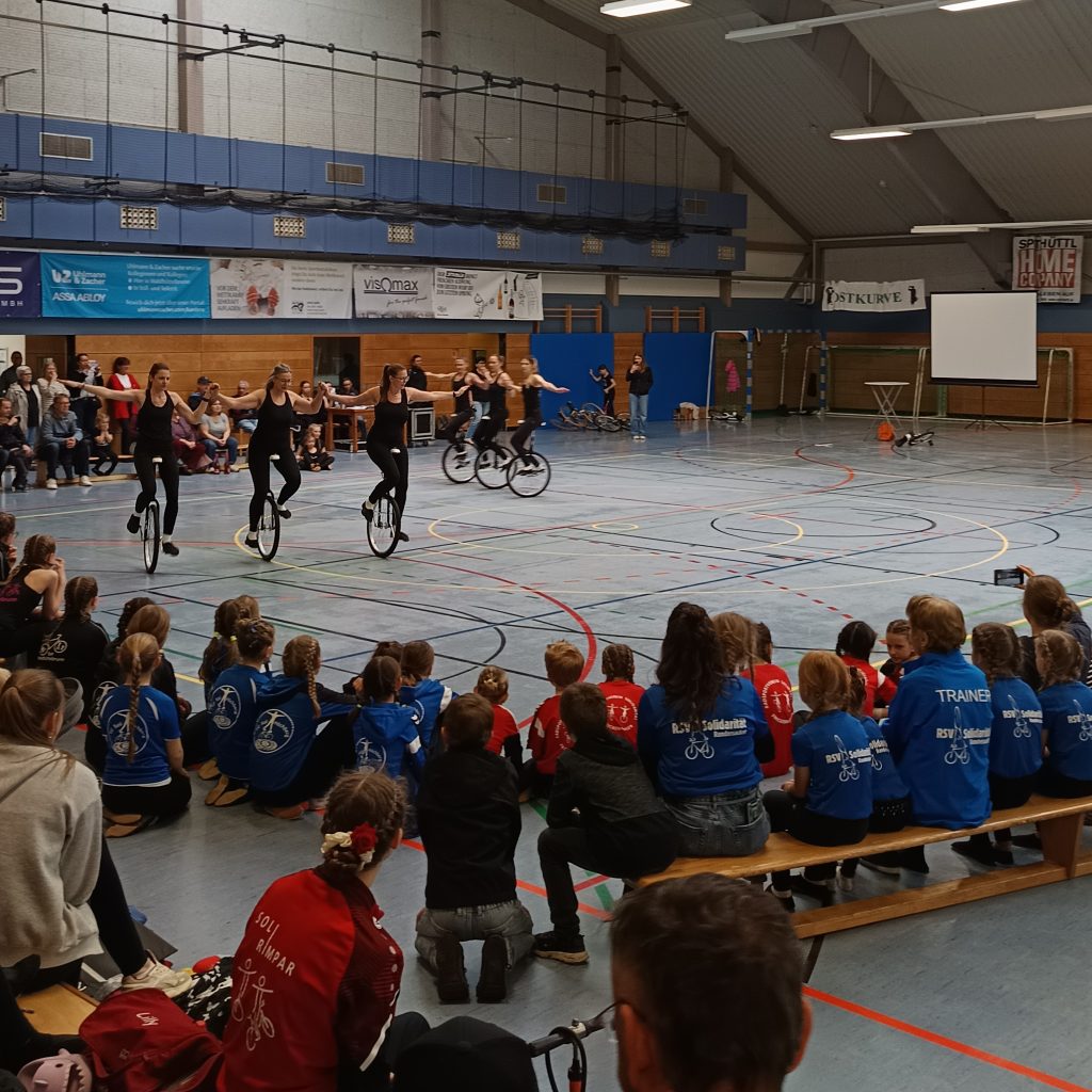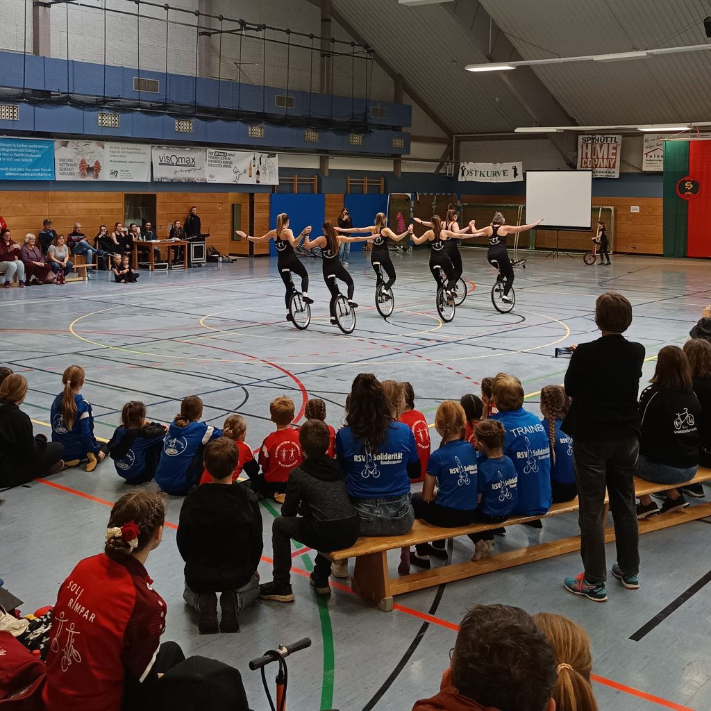 Bei Am Samstag den 14. März waren wir Ausrichter des BayernCups im Kunst- und Einradfahren. Weil unsere Soli-Halle für eine Meisterschaft viel zu klein ist, muss alles dafür in die Ballsporthalle gebracht und dort vorbereitet werden. Vielen Dank an Alle, die vor, während und nach der Veranstaltung kräftig mit angepackt und zum guten Gelingen beigetragen haben.