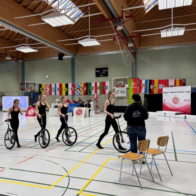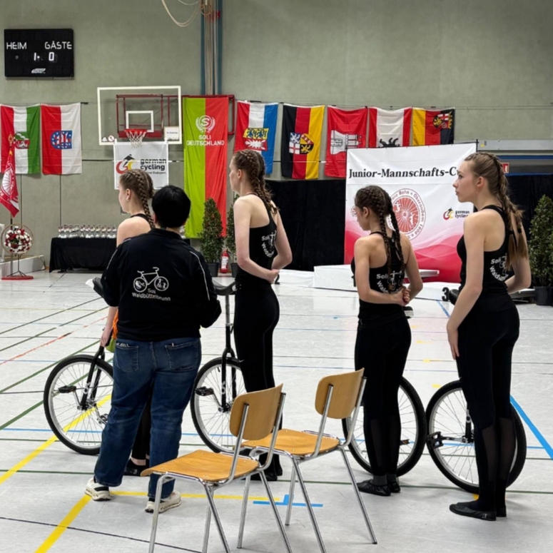 Bei der Bayerischen Meisterschaft der Junioren in Rimpar waren 3 Mannschaften von uns dabei. Marie, Franzi, Fiona und Marie haben sich im 4er-Einradfahren und im 4er-Kunstradfahren den bayrischen Vizetitel geholt. Nele, Romy, Isabel und Angelina erreichten den 4. Platz. Beide Einradmannschaften haben die Qualifikation zum Junior Mannschafts Pokal (Halbfinale der Deutschen Meisterschaft) erreicht. Wir wünschen euch viel Glück am 21. März in Bergheim bei Köln.
