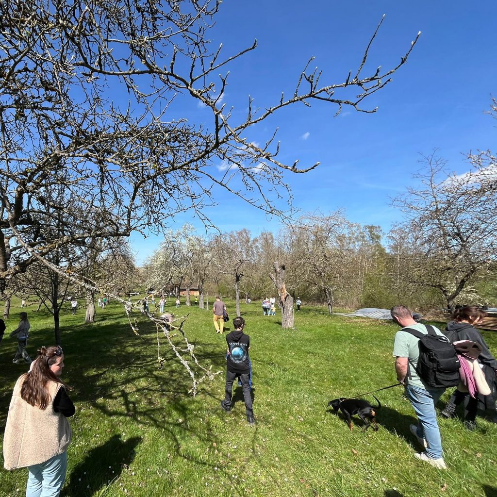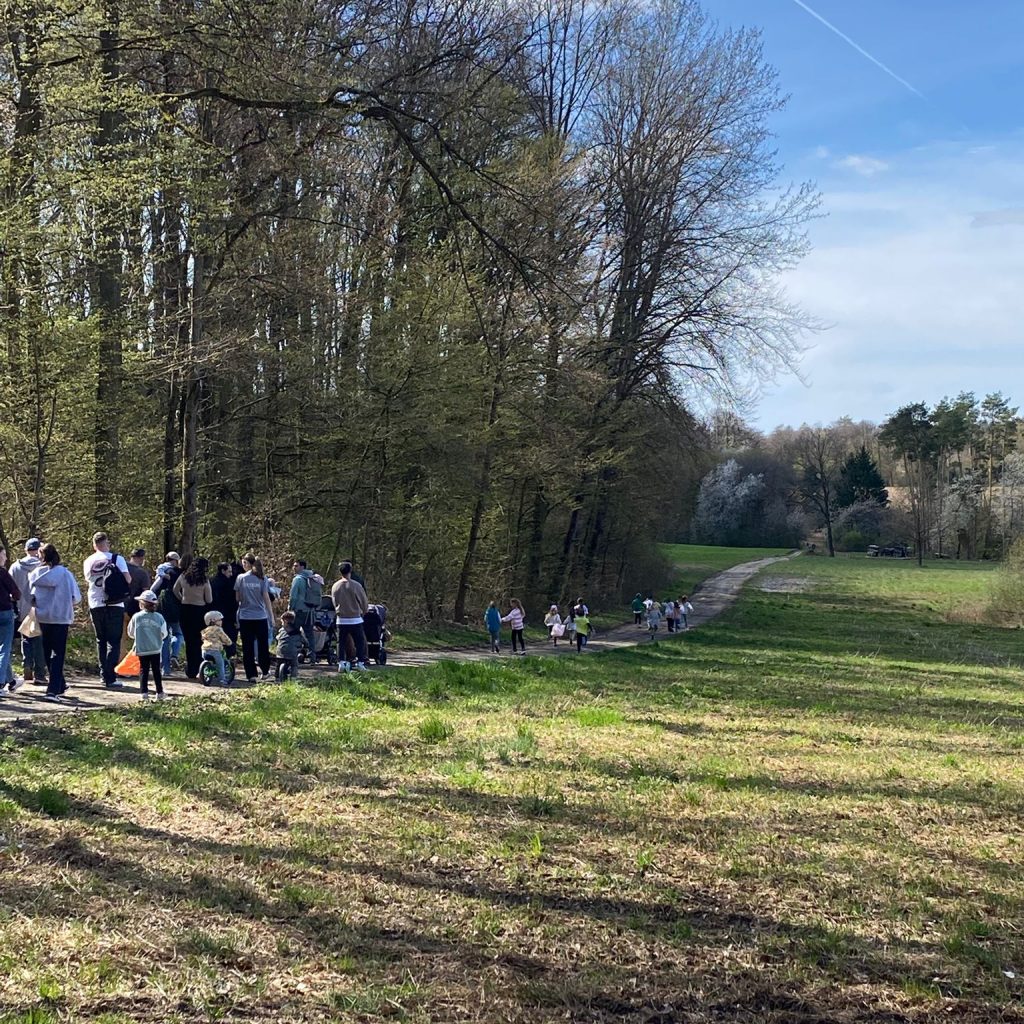Am Ostermontag trafen sich 70 große und kleine Kinder, um sich gemeinsam bei strahlendem Sonnenschein auf den Weg zum Herrlesbrünnle zu machen. Alle waren ganz aufgeregt und fragten sich, ob der Osterhase wohl dieses Jahr auch wieder etwas auf der Wiese versteckt hat. Die Strecke zum Herrlesbrünnle war kurzweilig, da auf dem Weg schon ein paar Eier gefunden Werden konnten. Am Ziel stieg die Aufregung nochmal, denn der Osterhase war wirklich da gewesen. Alle warteten an der Schranke und konnten schon die Süßigkeiten und bunten Eier sehen. Nachdem auch die letzten angekommen waren, gab Jugendleiter Felix den Startschuss und nach Alter gestaffelt wurde die Wiese erobert. Die Kinderaugen leuchteten. Erst füllten sich die Körbe und dann die Bäuche. Alle haben den wunderschönen Sonnentag bei Kaffee, Kuchen und kühlen Getränken an der Herrlesbrünnlesluft genossen, bevor sich kleine Trüppchen wieder auf den Heimweg machten. Die Vorfreude aufs baldige Zeltlager stieg schon. Danke an den Osterhasen und die Solijugend für die schöne Aktion.