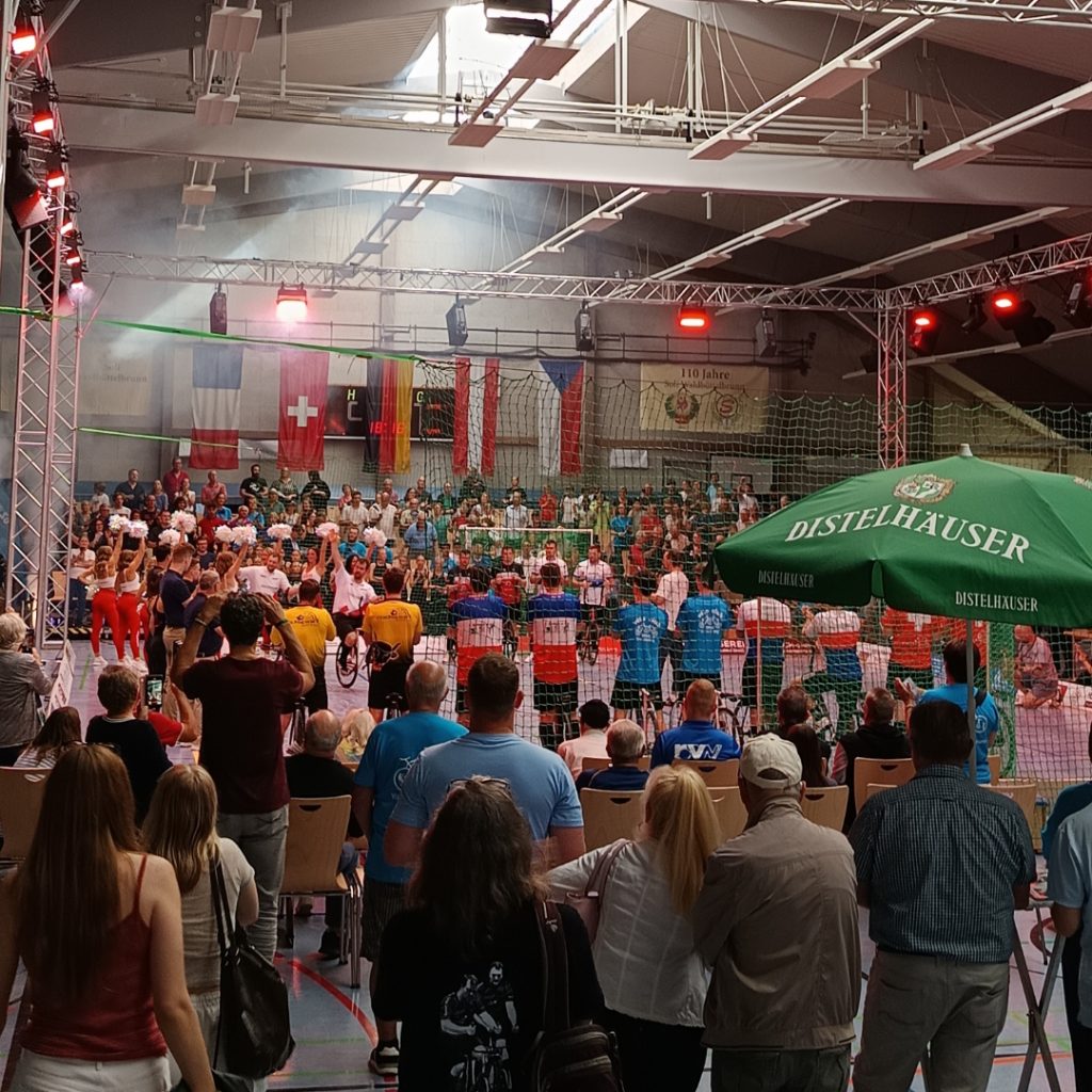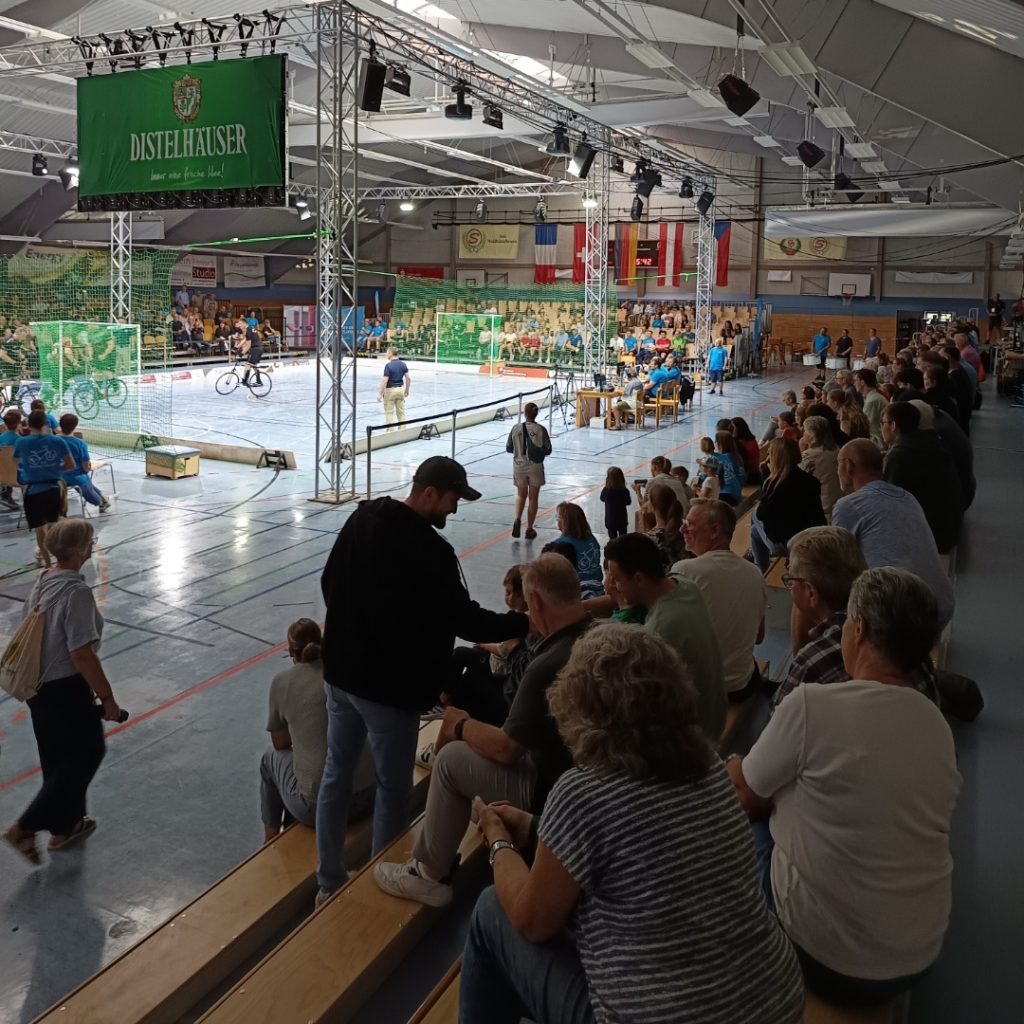 Dieses Wochenende war für unseren Verein ein echter Kraftakt. Bereits am Samstag vorher begann der Aufbau, der sich noch durch die ganze folgende Woche zog. Zusätzlich zur Errichtung des Festplatzes inklusive einer komplett eingerichteten Festküche musste noch die eindrucksvolle Radballarena in der Halle mit Hilfe der Fa. Verantec errichtet werden. Die Profitechniker trauten ihren Augen nicht, als sie die Helferschar wirken sahen. Ein Mix aus allen Berufsgruppen vom Lehrling bis zum Rentner, alle mit einem Ziel: das Weltcup Wochenende zu einem unvergesslichen Event für den Ort zu machen. Beim Aufbau waren täglich bis zu sagenhafte 60 Helfer vor Ort, an den Festtagen in der Spitze 120 Helfer. Ein Wahnsinn, was alle zusammen hier geleistet haben. Und das mit stets guter Laune, Gemeinschaftssinn und der Einstellung, den Gästen ein Erlebnis zu bieten. Der eigentliche Weltcup wurde bereits ab dem Sommer 2024 vorbereitet. Ein ca. 10-köpfiges Orgateam um Johannes Braun und Hubert Spiegel traf sich alle 4 Wochen, um alles was nötig war, in die Wege zu leiten. Es wurden zwei Infotreffs abgehalten und ein Hallenmagazin erstellt, die Homepage überarbeitet und wir haben neue Banden und Tore gebaut, die dem Verein natürlich auch nach dem Weltcup erhalten bleiben. Alle zusammen im Verein machten sich auf die Suche nach Unterstützern aus der Wirtschaft und ca. 77 Unternehmen aus dem Ort und der Region haben in einer Gemeinschaftsleistung etwas Tolles geschafft. Wir sind als „Soli-Familie“ sehr dankbar, für all die Unterstützung, die wir erfahren haben und zuletzt unserer Gemeinschaft im Verein, ohne die so etwas nie möglich gewesen wäre. Wir hoffen, dass der Ort und die Region dieses Wochenende genauso genießen konnte wie wir selbst.